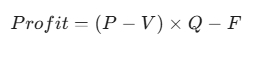 (P: 価格、V: 単位当たり変動費、Q: 販売数量、F: 固定費)
